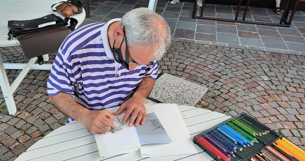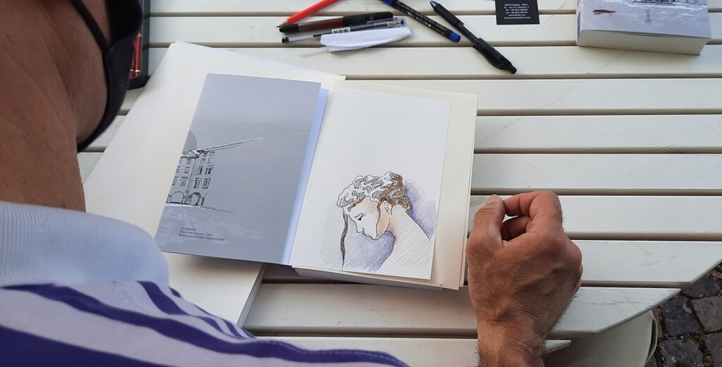 Anche in questa serata, l’artista Ennio Malisan ha personalizzato i libri dei presenti, con le sue opere.