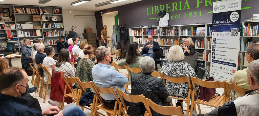 Alla libreria Friuli, l’Autore Giuliano Pellizzari, ha dialogato con la Dott.ssa giornalista Martina Del Piccolo, Direttrice artistica dell’evento “La notte dei lettori”.